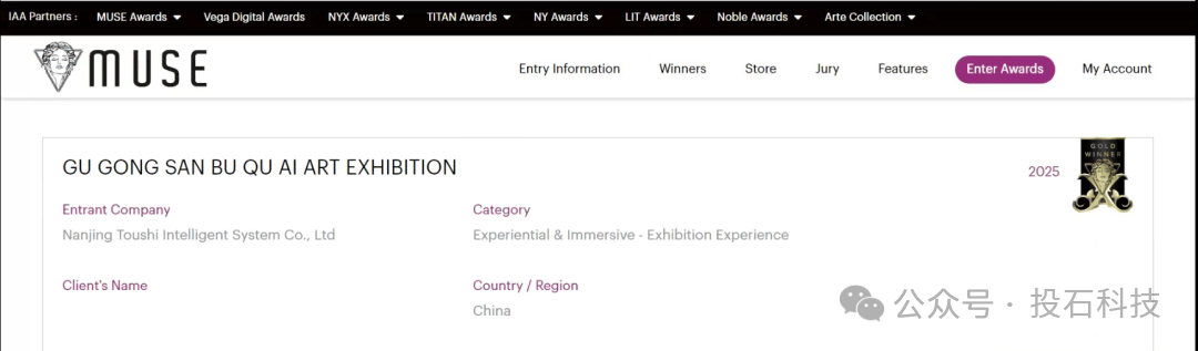 截至2025年10月中旬,2025年缪斯设想 MUSE Design Awards发布了获名单。本次展览斩获2025年美国MUSE设想金(国际设想项,《故宫三部曲》人工智能艺术大展累计欢迎实地参不雅者冲破3万人次,取故宫数字守护者对话。是一场实正意义上的产学研合做呈现。而大展利用AI算析《故宫三部曲》近百万字和404幅稀有的照片,评审团由 23 国 44 位权势巨子专家构成,通过AI手艺将章剑华百万字文学巨著为沉浸式艺术体验,